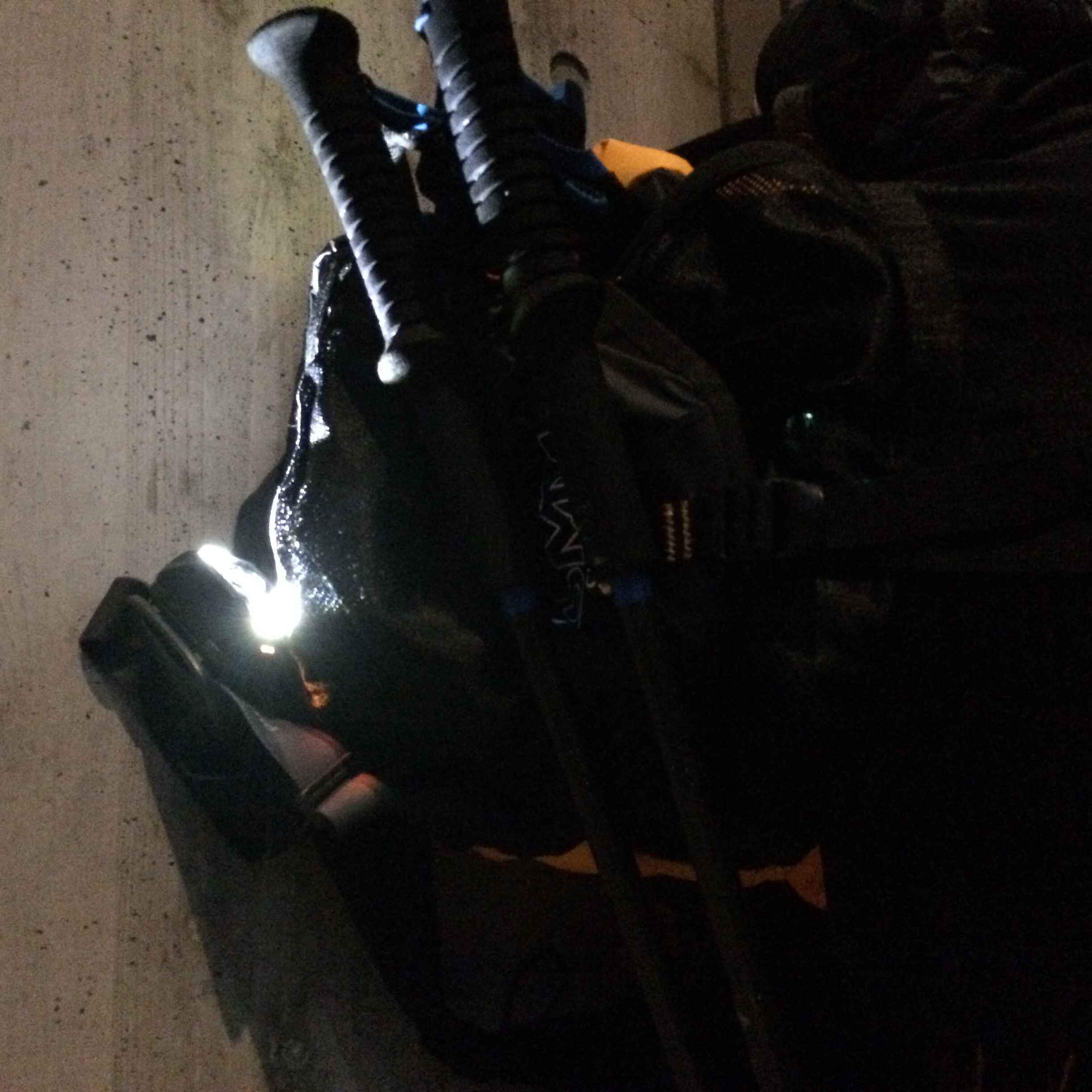 軽量性と防水性から、Black DiamondのStormを使用しました。最近のヘッドライトの明るさは驚くものがあり、160ルーメンというのは暗い部類に入るのではないでしょうか。ただ使用してみると、この縦走競技に使用する明るさとしては十分であり、むしろこれ以上明るいと、その弊害もでてくるかと思います。(目の疲れや、照射範囲外との明るさの差が大きく、分岐を見落とすなど)又、赤外線モードは、深夜に小屋近くを通過する際や、避難小屋に入るときなど、マナーモードとして役立ちました。
