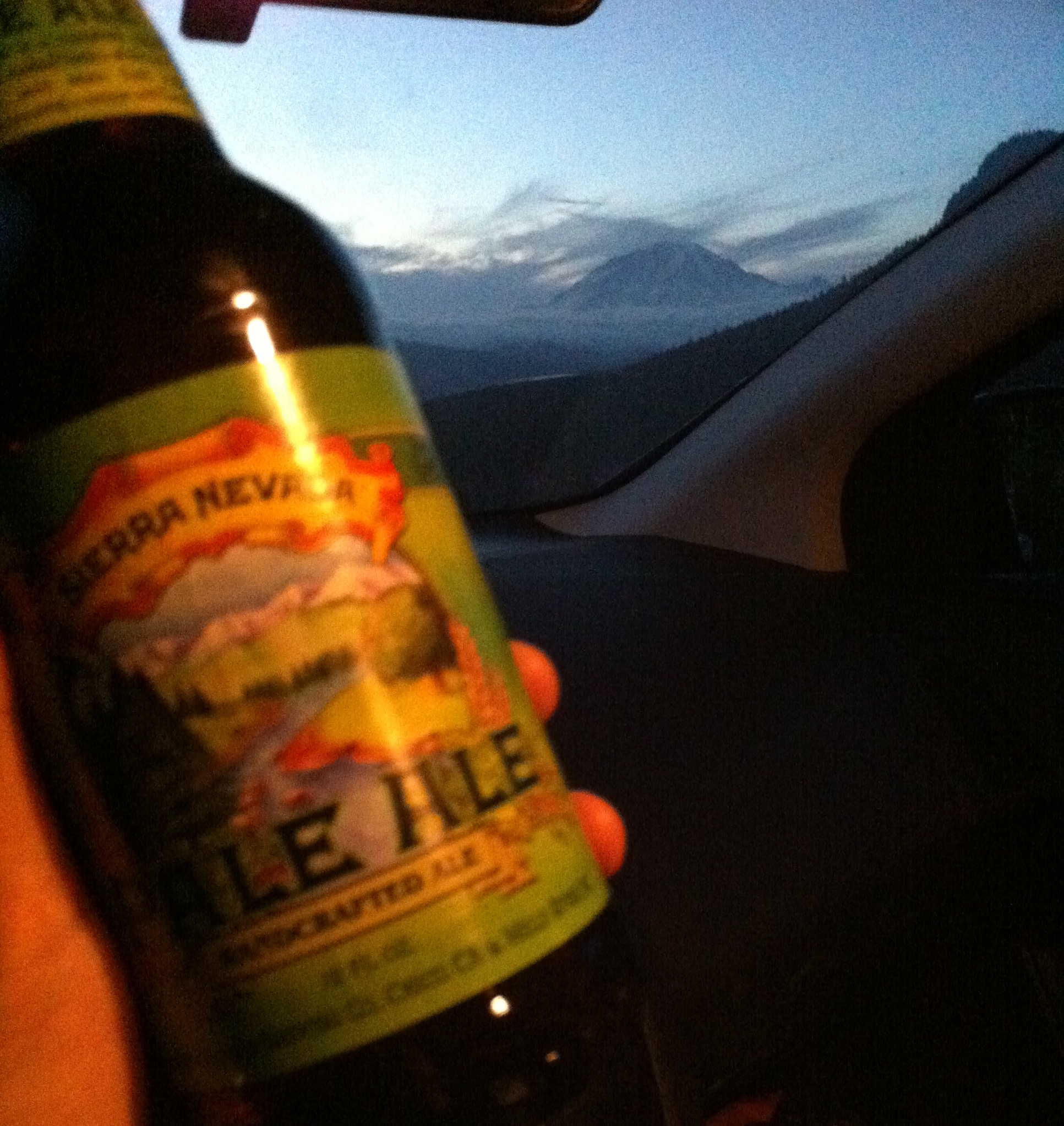 サポートクルーも200マイルとなると耐久戦になる。最後の夜を車中で迎えるとき、寝酒にクラフトビールが必要となったようです。(ドライバーを除く)カスケード山脈のレーニア山をバックにシェアラネバタ山脈のビールではあるが、PCTトレイルでつながっているのです。ピンボケですが臨場感がある大好きな1枚。