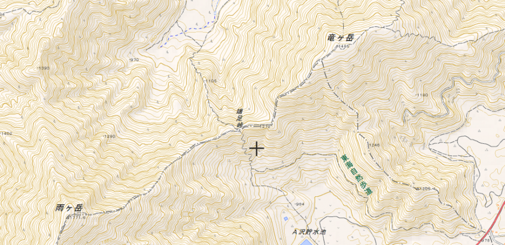 自分は試走をしていたので(当時の試走禁止区間ではなかった)、 この竜ヶ岳は大した事はない、登り始めれば、程なくしてピークを踏めるとわかっていた。だが、試走ができない地方からのランナーや、疲労困憊のランナーは、「もう本栖湖の関門に間に合わない(泣)」とへたり込み、歩みを止めてしまう者もいた。そうした彼らに、「あの山は大した事はないんですよ、錯覚ですよ!」と声をかけながら、自らも本栖湖へと急いだ記憶がある。本当に錯覚だったのだろうか?あるいは高低図は別のルートを示していたのだろうか?そのなぞ解きをしてみたい。国土地理院地図で確認してみましょう。