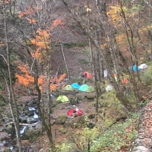 三条の湯の小屋のご主人はディア・ハンターでもある。増え続ける鹿が笹を食べ、保水力が落ちて土壌浸食が進み、トレイルが崩落するという現象が起きている。実際、雲取からの稜線から降りてくるルートは現在、昔の尾根道を復活させた山地図にはないルートにリボンによって誘導されている。そんな山を守りたい気持ちでハンティングを始めたというだけあって、命を無駄にすることはせず、鹿の燻製などで登山客をもてなしている。今年は若い小屋番の方が新たに入られていた。少しづつ、若い登山客の感性にも対応できるような努力も見受けられた。小屋番の方のブログの写真がとても美しい。https://lineblog.me/sanjo/archives/887513.html
