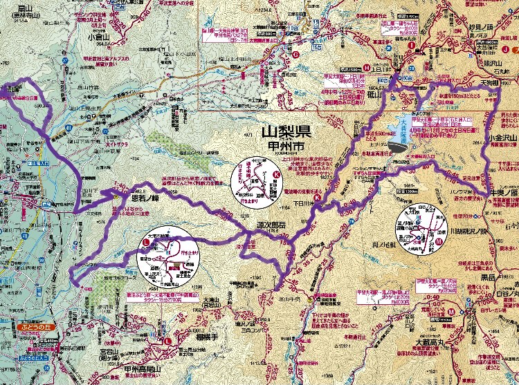 中盤-1 、最高地点、小金沢山(2,014m、秀麗富岳12景)までは、高低図では大きな登り下りはなく、イージー区間に見えるが、苔むす岩のトレイルで、スピードは上がらず時間がかかる。