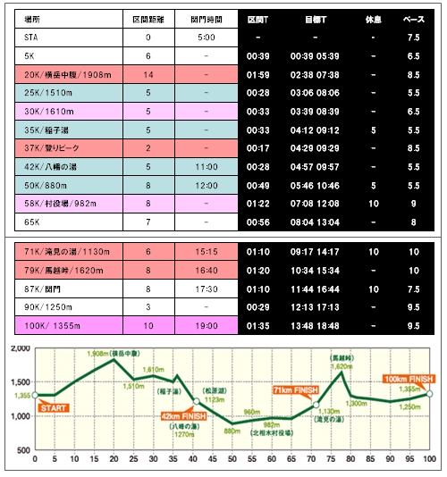 完走記とラップ計画、実際の時間、実際の距離(パンフから適当に図ったので)