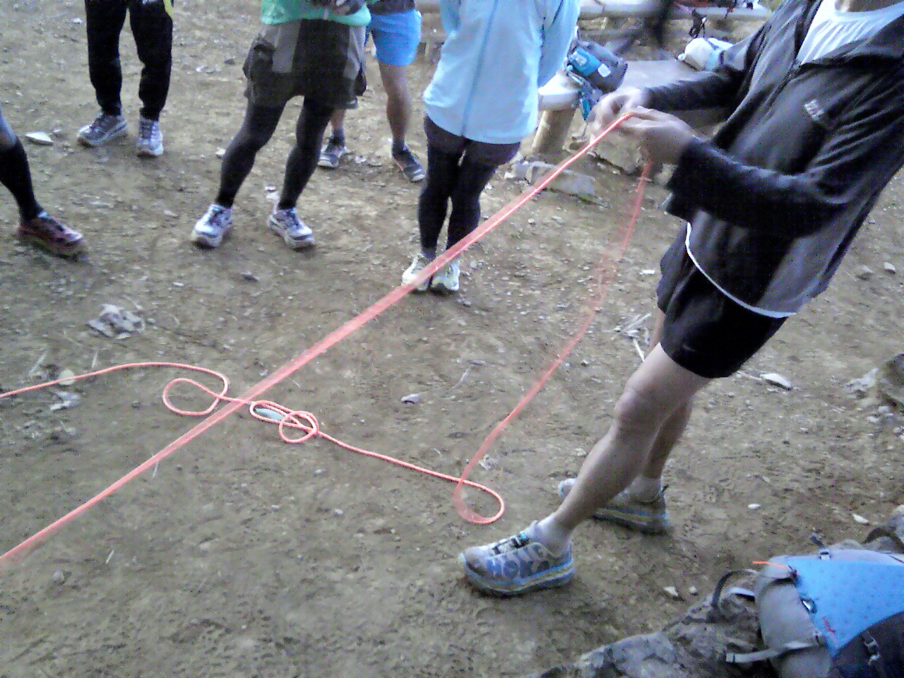 そんなこともあり、蚊取り線香さんから日の出山でロープワークの紹介。ロープワークは縛り方など忘れてしまうので、復習・復習。