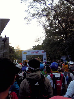 スタート地点。ゴールタイム別に自己申告で並びますが、混んでます。後方は完歩狙い参加者も多い。