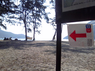 ・コース案内は少ないが、要所要所にある(↓写真の看板やテープ)。また、コースは香港で有名なトレイルルートのため、山登りをする人のアイコンが書かれた白い標識にあわせて走ればOK