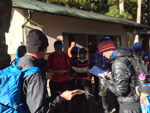 コースは、両者がホームとするハセツネコースを基軸として、サルギ尾根~大岳山~馬頭刈尾根~瀬音の湯の17km程度のショートですが、今回は「山のリスクマネジメント」をテーマに開催。ハセツネのサブ10コースを開催するkeg氏から「今回は走りません。自分のトレランペースで2時間のところを4時間かけます」といことで、大岳山までをkeg氏の「地図読み」、後半の馬頭刈尾根は塾長の「道具の使い方」「足の置き方」と2パートに分けた内容でした。