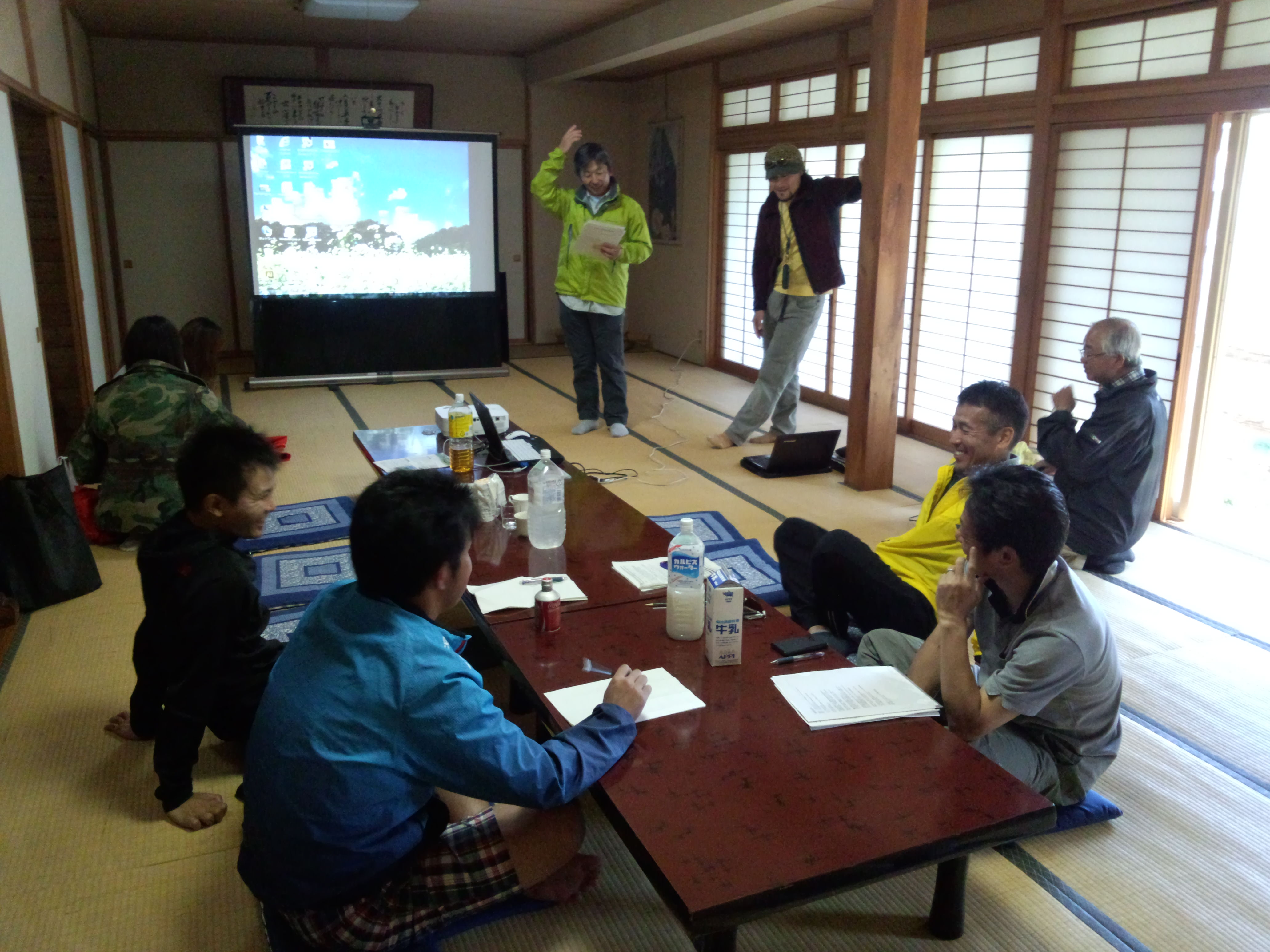 イベント前週には台風が猛威を振るい、七時雨山の山道や林道もかなり被害を受けました。キャンプ予定地は川の増水による丸太橋の損壊や温泉施設の被害により、キャンプ場予定地を急遽変更、何とか開催にこぎつけました・・・
