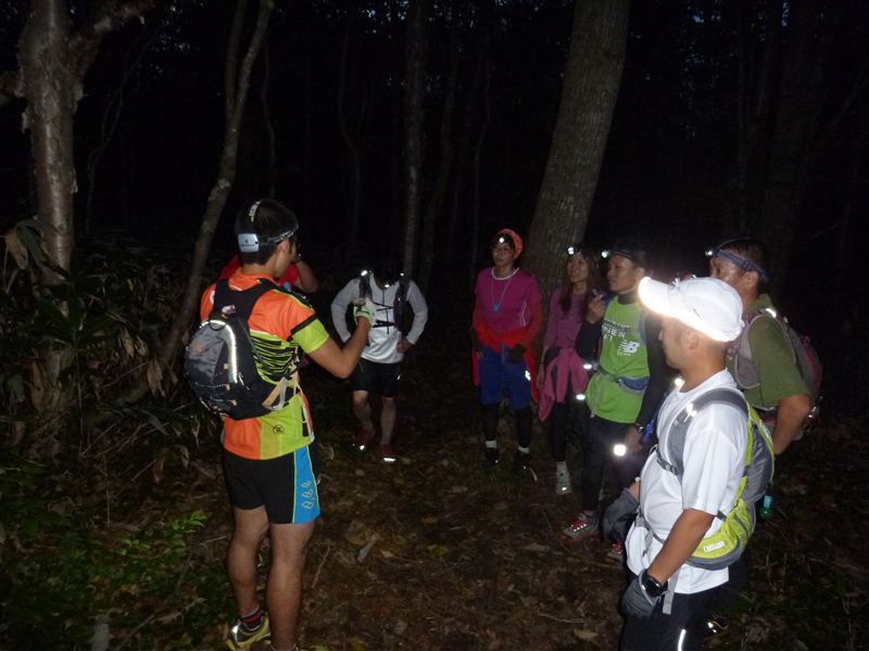 ヘッドライトの使用ポイントからハンドライトによる下山方法、色々なコツとポイントのレクチャーを参加者の皆さんは真剣に聞き入ってました。