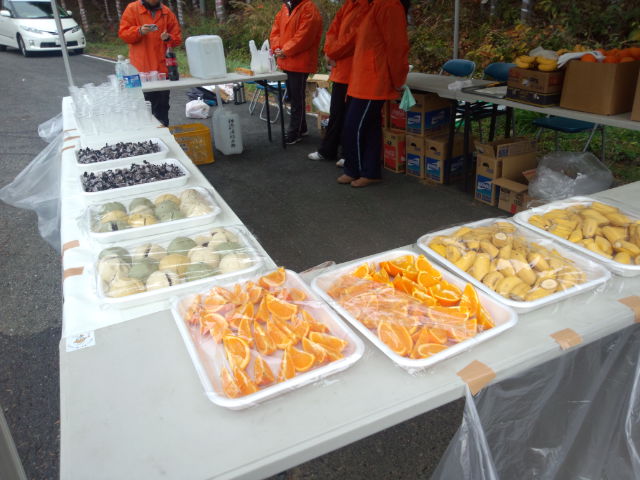 私が担当する第2エイドは役場職員の方々5名と県外ボランティアが私を含めて2名。計7名での運営体制でした。役場の皆さんも5回目となると手慣れたものであっという間に選手を迎える体制が整いました。