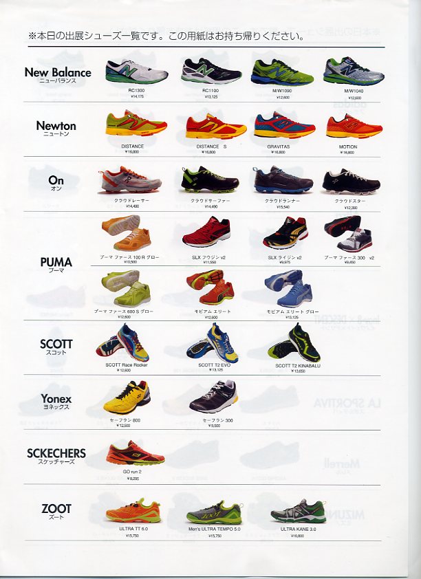 トライアル出来なかった、newton、ZOOT、LA SPORTIVA、Yonex。さすがに時間ありませんでした。