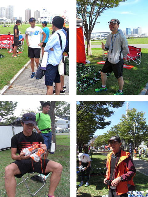 左下NBきってのトライアスリート植木さん。手にしているのはお互い気になっていたonのシューズ。
