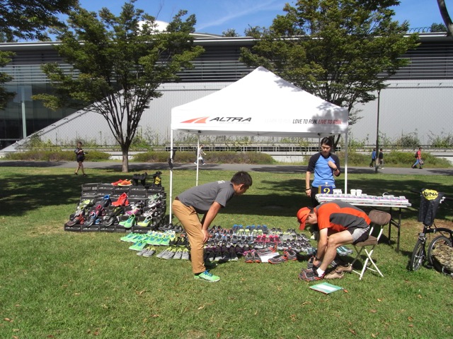 駒沢parkでもこのサイトでも多分おなじみのALTRAはこの日来場していたロード系のランナーの方々は知らない人が多く、興味新々。福地さん夫妻が奮闘されていました。ALTRAのトライアルも楽しみでした。