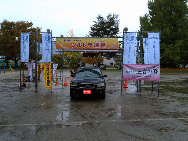 お手伝いの特典として車でゴールゲートくぐらせてもらいました。(なかなか貴重な経験ですね)
