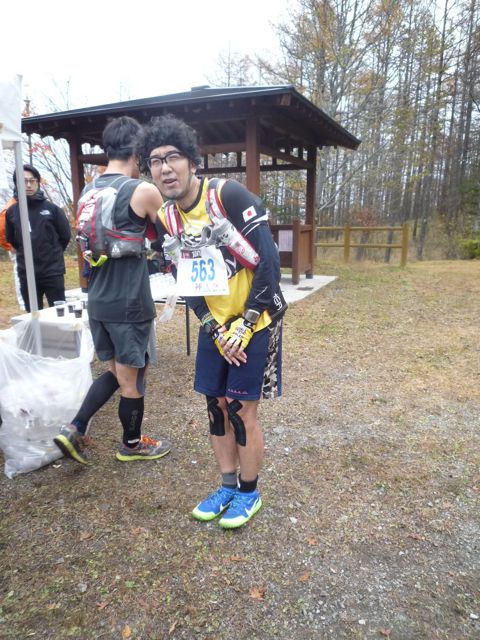 第3関門の持倉集落以降は下りだよね〜と思っていたらそのあとも結構上りが多く心も身体もかなりうんざり。両脚も痙攣を起こして、残り5kmはかなり辛かったのですがサメが「ちんたらしてると食い殺すぞコノヤロー!」オーラを出すので半べそ描きながら後ろを付いていき、打ち合わせ通りのサメの肩車ゴール。(コースディレクターの注意アナウンスあり)