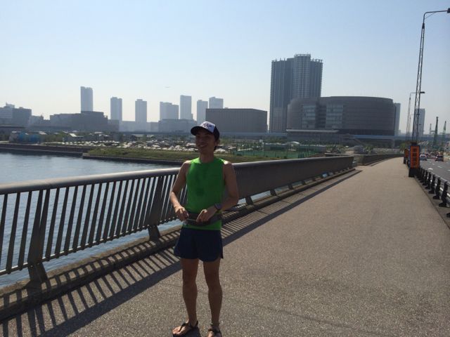 意外とお台場側からの勾配がキツい。夏場の良い練習コースにできそうですね。