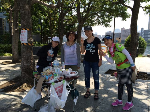 勤務先の近所で帰宅ランコースなのでこの辺りはよくわかります。勝鬨橋で最初のエイド。