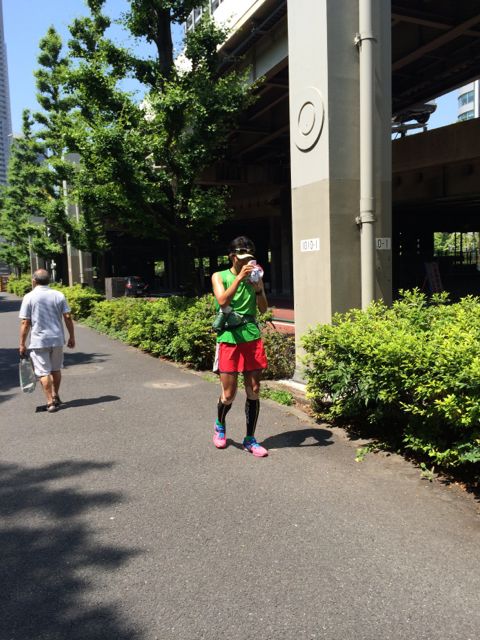 予想以上の暑さに見舞われて、都内一般道のアスファルトの照り返しや空気や厳しかったですが、それでもビルの日陰など要所要所オアシスがありました。(同日に行われている某ウルトラマラソンは河川敷のコースで道中直射日光にさらされてランナーの皆さんは大丈夫なんだろうかと心配になりました。)