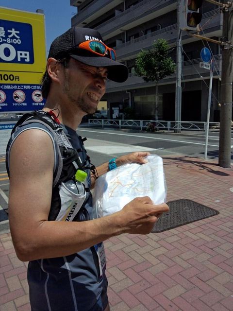 その後遅れて中継地点に到着したサメ先生。ここでレースやめるだろうと思いきや、着替えて力強く後半に出発。漢を見ました。(その後77kmで散ったそうです。涙・・・)