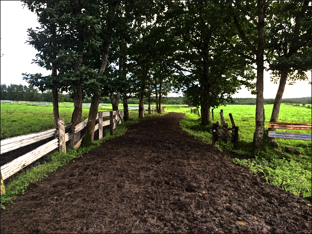 平原を抜けてご好意でコースに設定させていただいている横田牧場の牧場内を通過するします。ここ牧場内の牛の通り道なわけですが、泥濘るんだ土の中に牛糞の地雷が散らばっているので、この時点でシューズの事はあきらめました。(糞踏みデフォルトです。)
