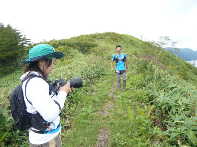 摩周湖展望台から逆走してきた走るカメラマン「ゆき姐」と合流。イメージ動画や、写真を色々と撮影してもらい本日の試走終了。