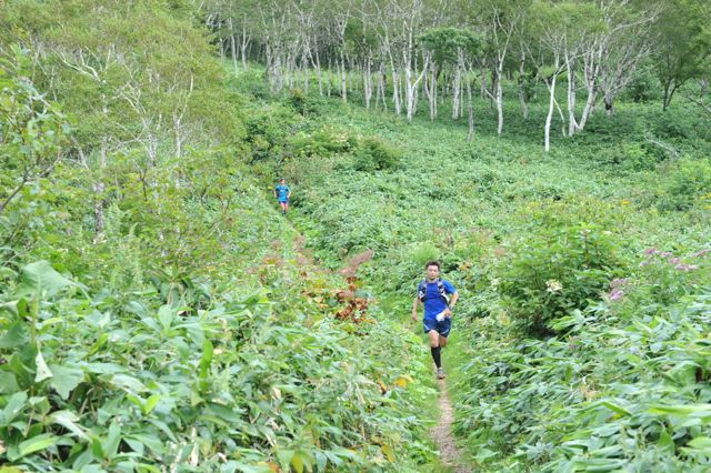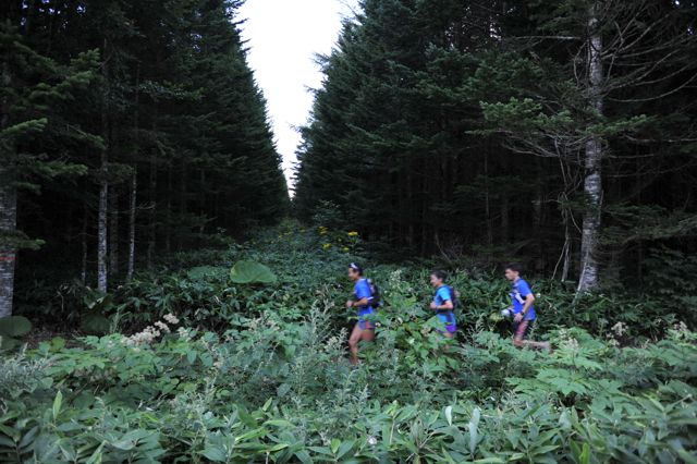 車でも長く感じる林道を抜けて本コースの山場「西別岳登山口」へ到着。ここで師匠と別れて、3名で第5ステージの11.3kmを走りました。