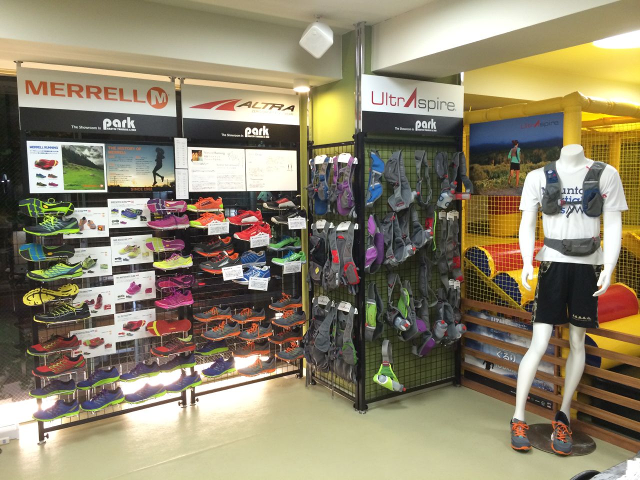 仕事でもトレーニングでもお世話になっている駒沢大学にある加圧トレーニングスタジオ『park』のコーナーにアウトドアシューズメーカーのMERRELLとトレイルランニングのギアUltraspireのTEST SHOPが10月1日OPENしました。