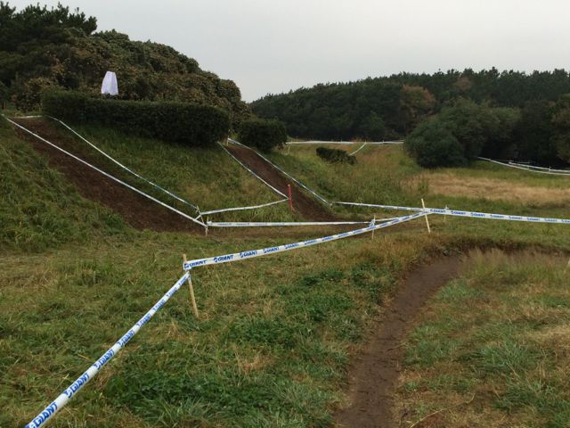 コースは写真の様にシクロクロスのやマウンテンバイクのコースを走ります。トレイルランニングよりクロスカントリーレースのキツいバージョンという感じです。