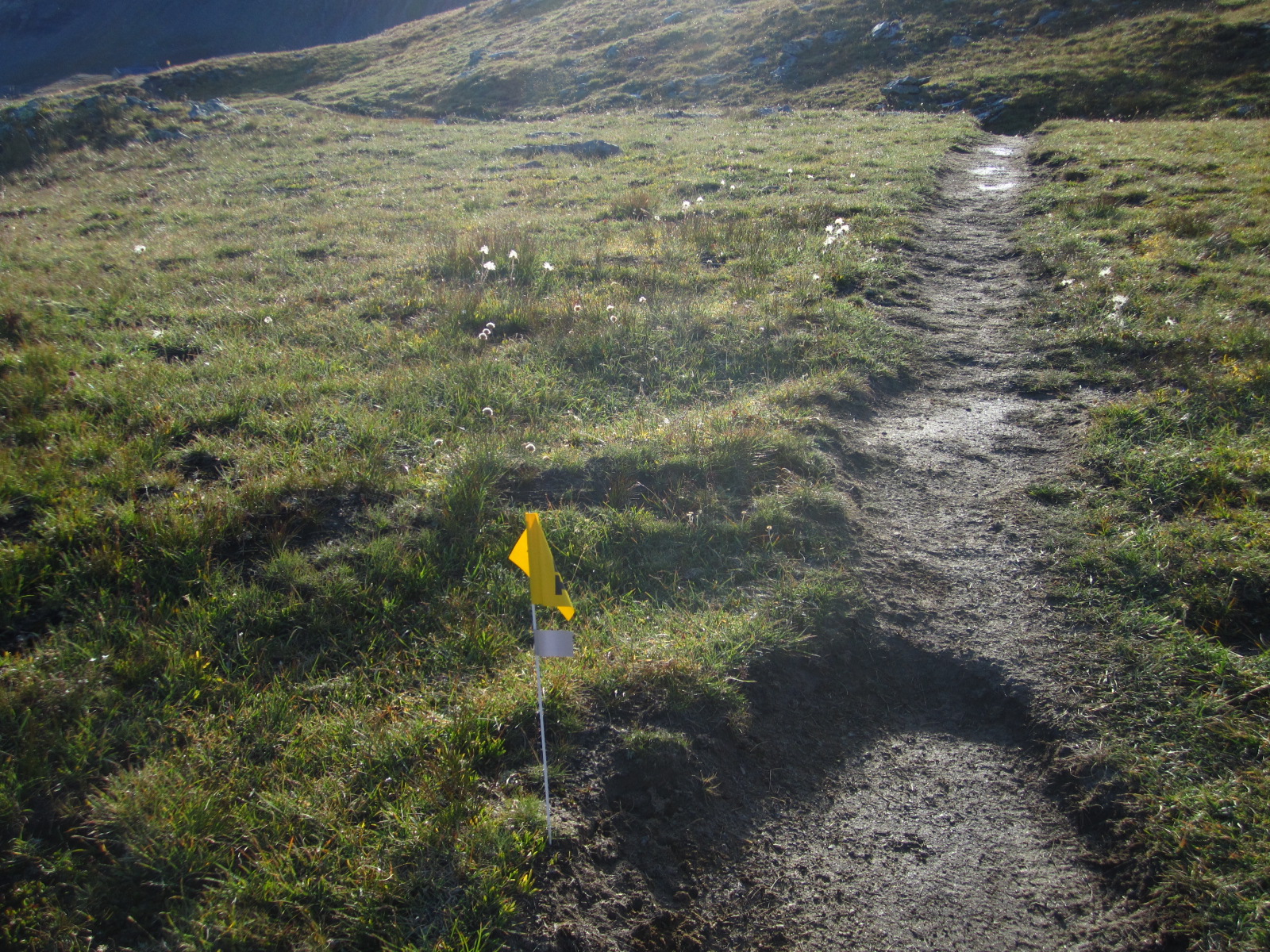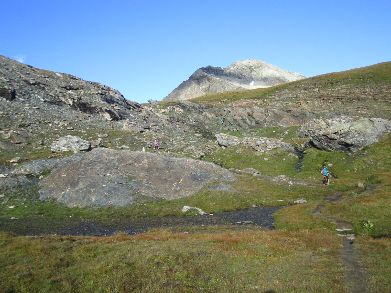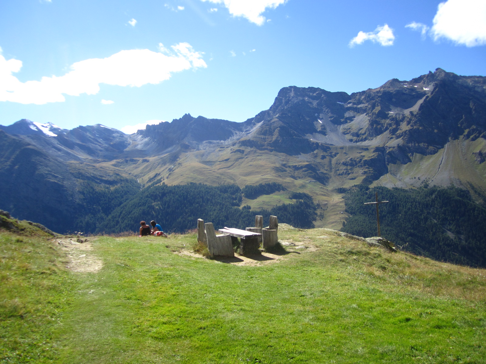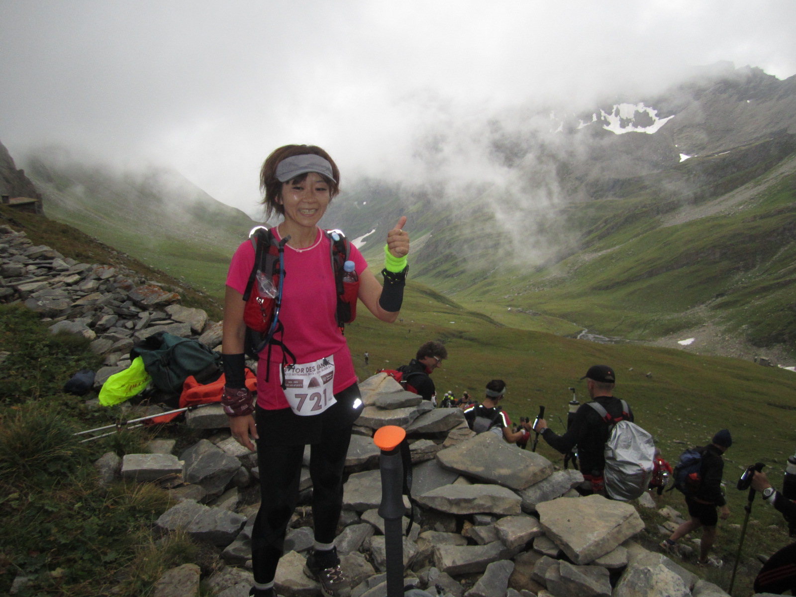 Donnasを出発してかなり険しい道が待ち受けていた。眠い中、平たい石の上をいくが暴風でコンタクトもストックも飛んじゃったらどうしよう~と思った。・・・でやっと着いた。ここは本当に天国だなと感じた。わんちゃんもほっとしてる。みんなで顔を合わせてほっとした場所でした。
