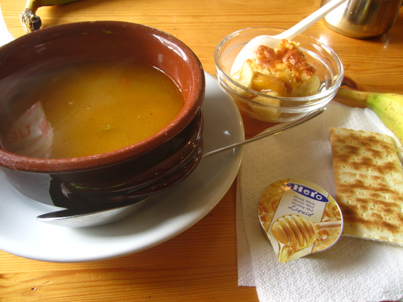 ここの山小屋が一番好き! 美味しいスープとケーキとフルーツと。はちみつもあったよ。
