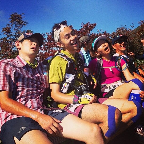 ここから山田さんと大ちゃんと3人でおしゃべりしながら進みました。山田さんはルナサンダルとシャツ着用。あとウエストポーチに笛ラムネが補給食。大ちゃんは一眼レフを首に下げて走っています。