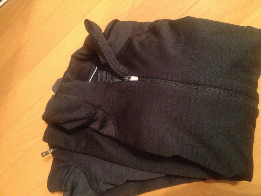 さて、冬の私はポリエスルのTEEの上にPatagoniaのキャプリーン4を着ます。ポリエステルのTEEにサーマルのアームウォーマーだと寒い場合、このプルオーバーが役に立ちます。薄い起毛フリースのプルオーバーで、裏がキャラメルピケのような凹凸があり、保湿力と通気性の良さが特長です。雨の日もさらっとしており、快適に走れます。