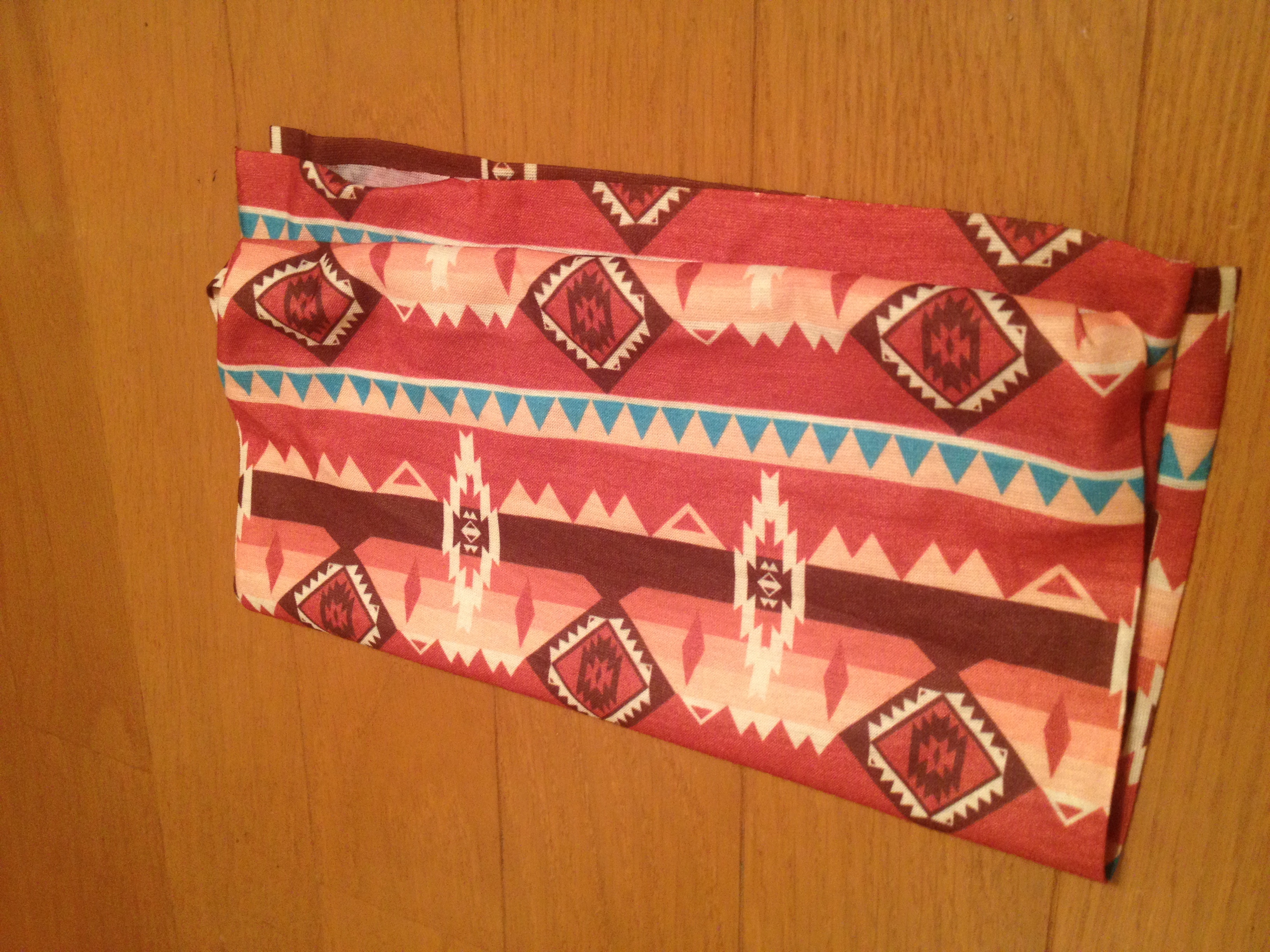 ②ヘッドバンド代わりに、邪魔な髪をよけます。出したい柄を出すこともできるし、好きな幅への調整もらくちん。