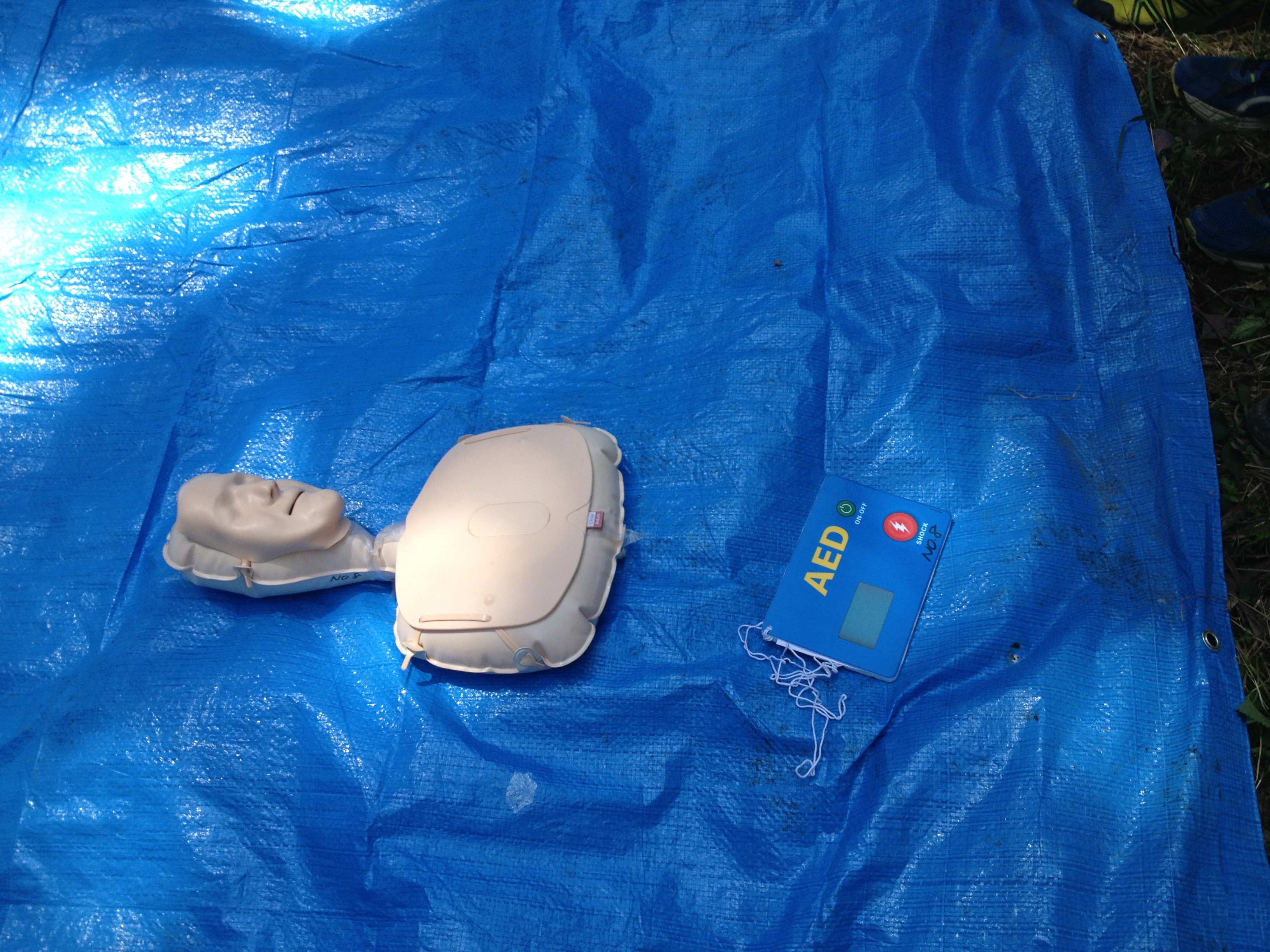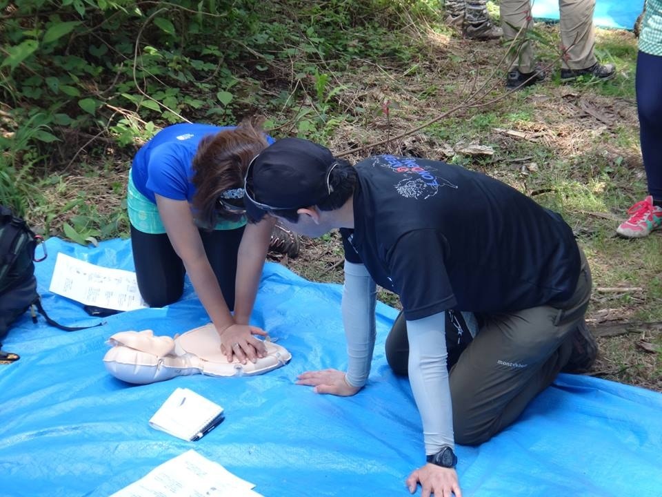 胸骨圧迫と人工呼吸、そしてAEDの使用という流れを山を歩いていたら、人が倒れていたという架空の状況で学習しました。