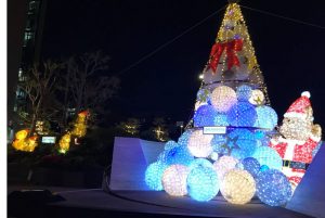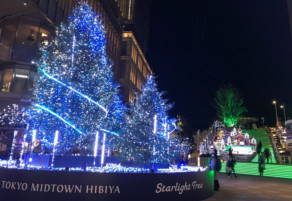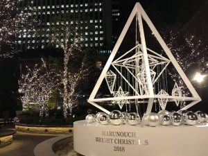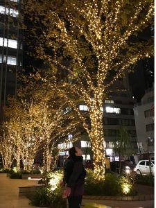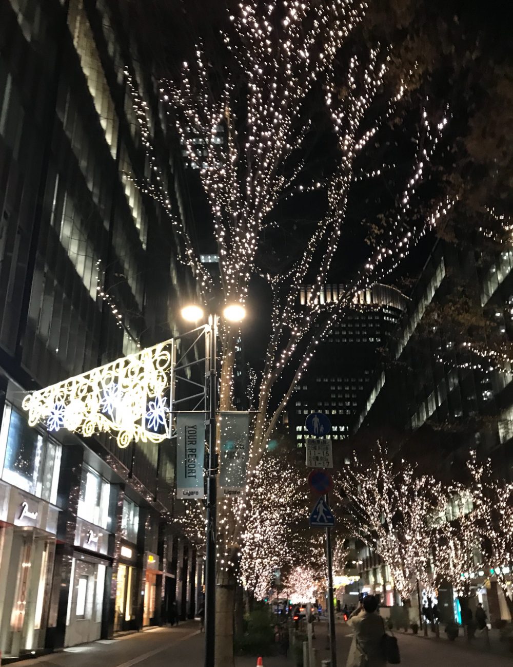 そして京橋に。新しいビルの江戸グランのツリーは背が高くスマート。白基調でも暖かい光です。