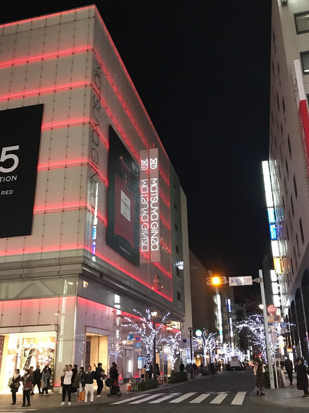 しかし銀座はハイファッションブランドが多いのでクリスマスイルミネーションじゃないかもしれないけど華やか。