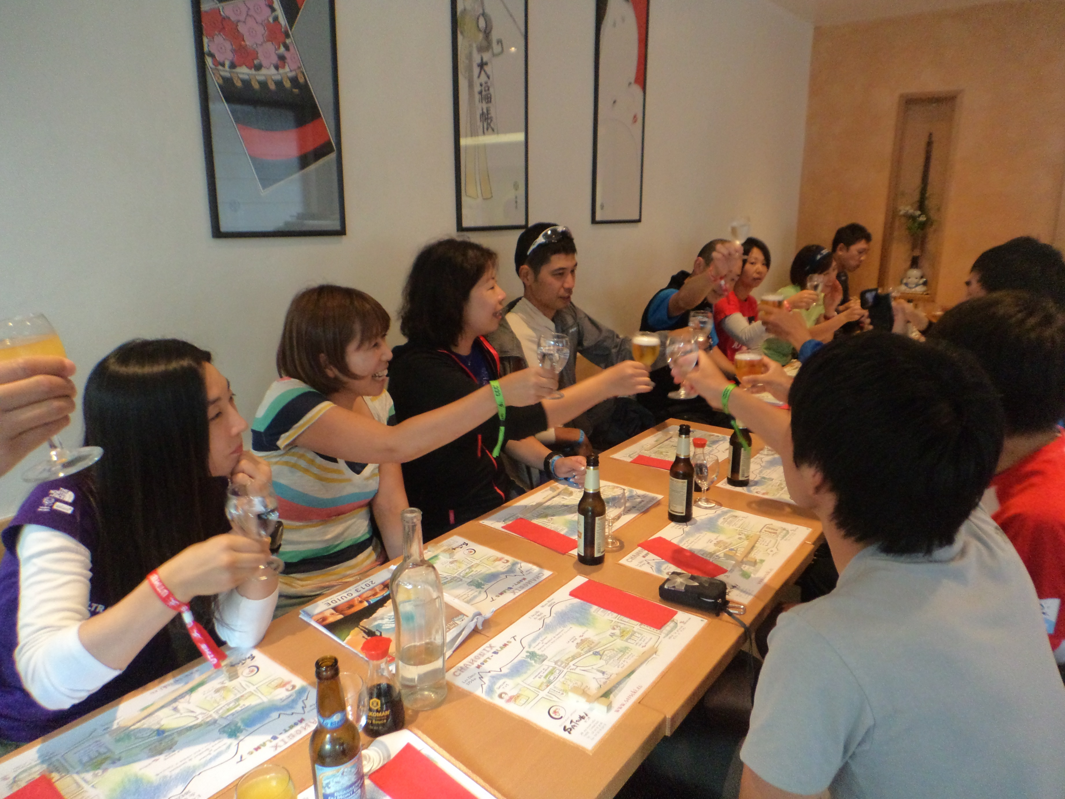 その後は、すぽるちばのメンバーや同宿の方達と共にさつきに決起会を開催。でもレース前日なためアルコールは少な目。