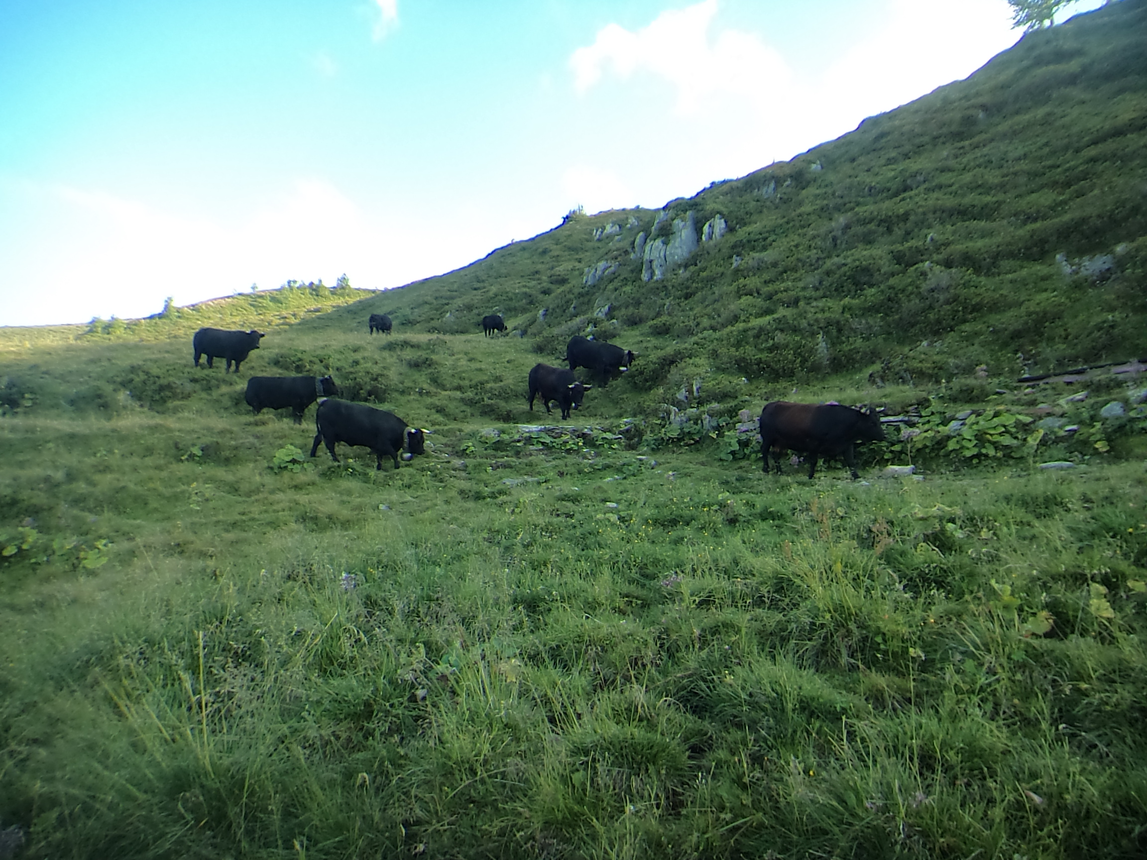 牛がたくさん放牧されていて、なんとトレイルにまで侵入している。