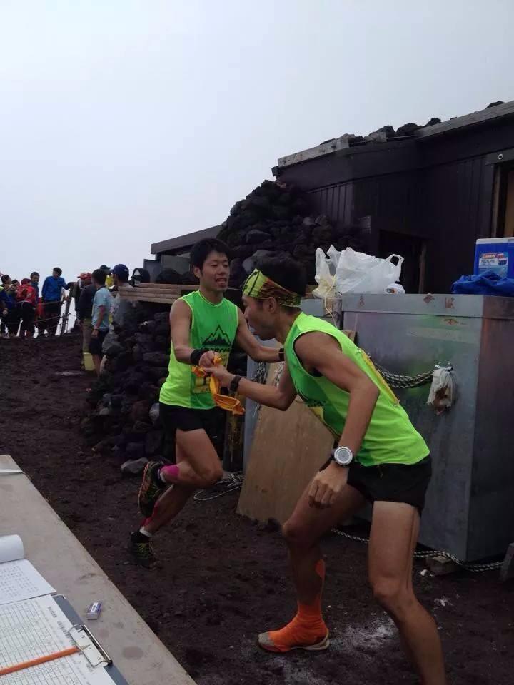 5区ゴールの7合5勺の砂走館では、サポートのうるしーさんにお世話になって西君を待つ。