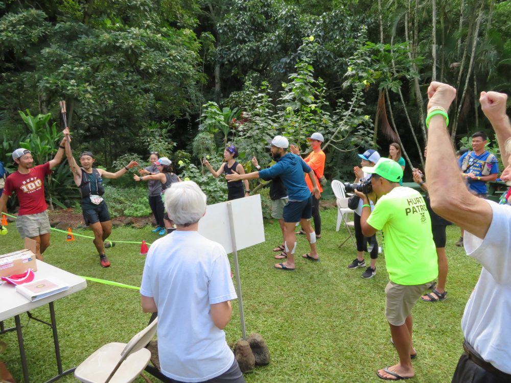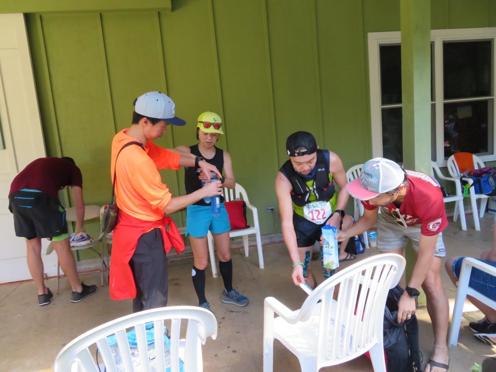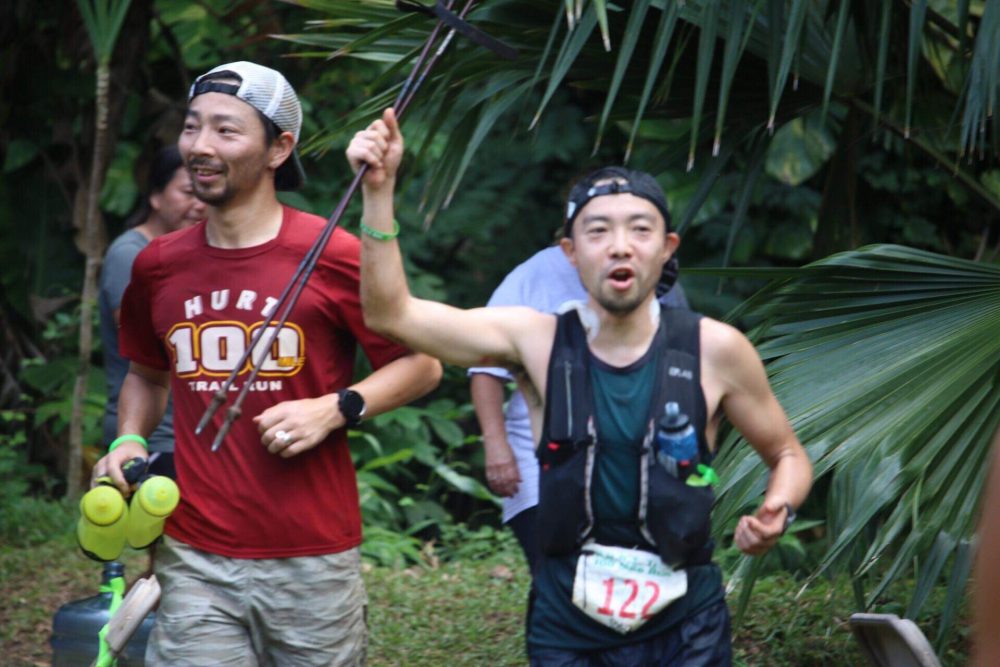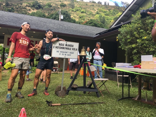 ところどころ待ってもらいながら、なんとか下るとヌアヌにリョウ君がいた。大分回復して、なんとかゴールは行けるとのこと。