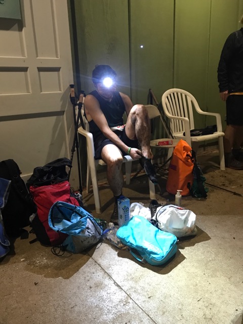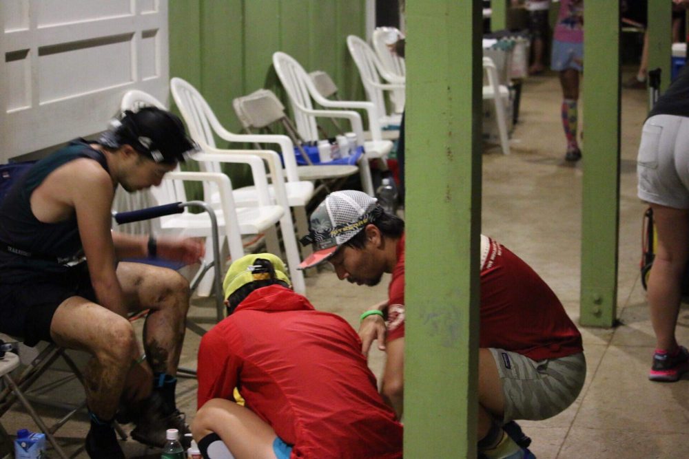 突如、Leg2の下りで少し異変を感じ出した。雨や汗でずっと濡れていたので、股擦れが酷くなってきて、下りが痛くなってきたのだ。ワセリンは結構こまめに塗っていたのに、すぐに流れ落ちてしまったようだ。すぐにヌアヌエイドでワセリンをもらったのだが、それもLeg3を下っている時には落ちて、かなりの激痛。。