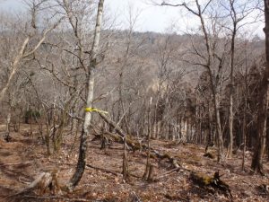 眠くて幻覚を見ながらも尾根にたどり着くと、木がまばらで苔むして、明瞭なトレイルもないエリアが現れた。普通には見られない風景でゆっくり休みたいところだけど、風が強くてたまらない。