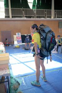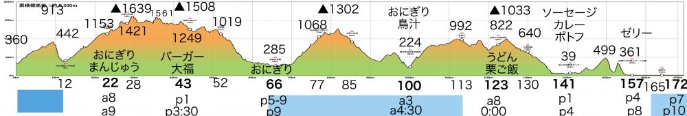 寝ると決めていたエイドに到着した時は、1時間溶かして2時間半の余裕。奥に仮眠用のエリアがあったので、エアマットやエスケープヴィヴィで寝床を作って寝る。4時半で追い出されるので4時に起きるはずが、目が覚めたら4時15分だった。タイマーかけてなかったのが敗因。