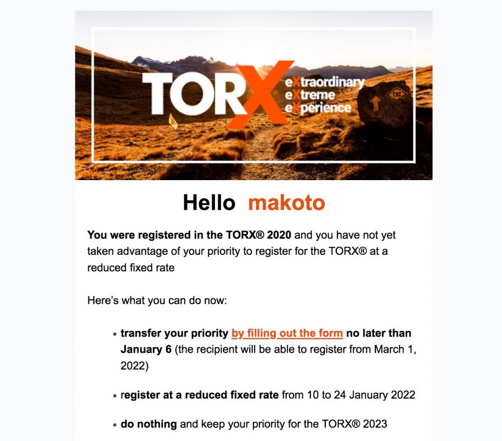 2020年は中止、21年は見送り、年末となった今日TORXの案内がキタ