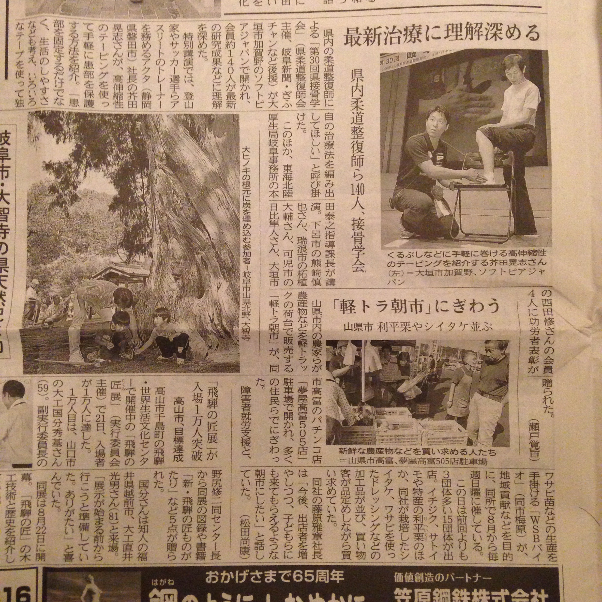 9月20日(日)大垣市にて「第30回 岐阜県接骨学会」が開催され、ニューハレ®トレーナー芥田による特別講演(テーピング講習会)のためにお招きいただきました。「スポーツ現場からのトレーナー活動による伸縮テープ術」