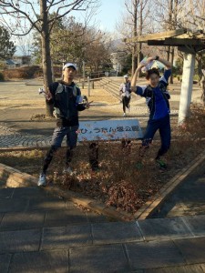ポイントが設定されていてその場所で証拠写真を撮らないといけないのです。隣りでおどけてるのは(ひょっとしたらドMポーズかな)”ロゲイニングの帝王”柳下大さん。帝王のパートナーは望月将悟さん。今思えばスゴいペアの横で写真撮ってるな。この時はそのスゴさもよくわかってなかった。一度追い抜かれたんだけど確かにもの凄いスピードで一瞬にして消え去っていきました。