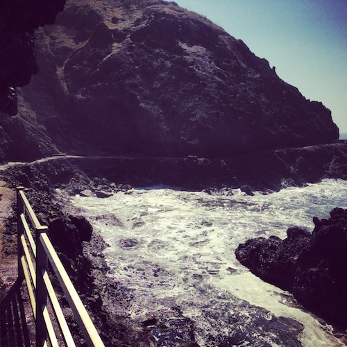 海も珍しく春っぽい感じでした。あ、ここもコースの一部です。波のタイミングによってはスプラッシュマウンテン的に楽しめますw