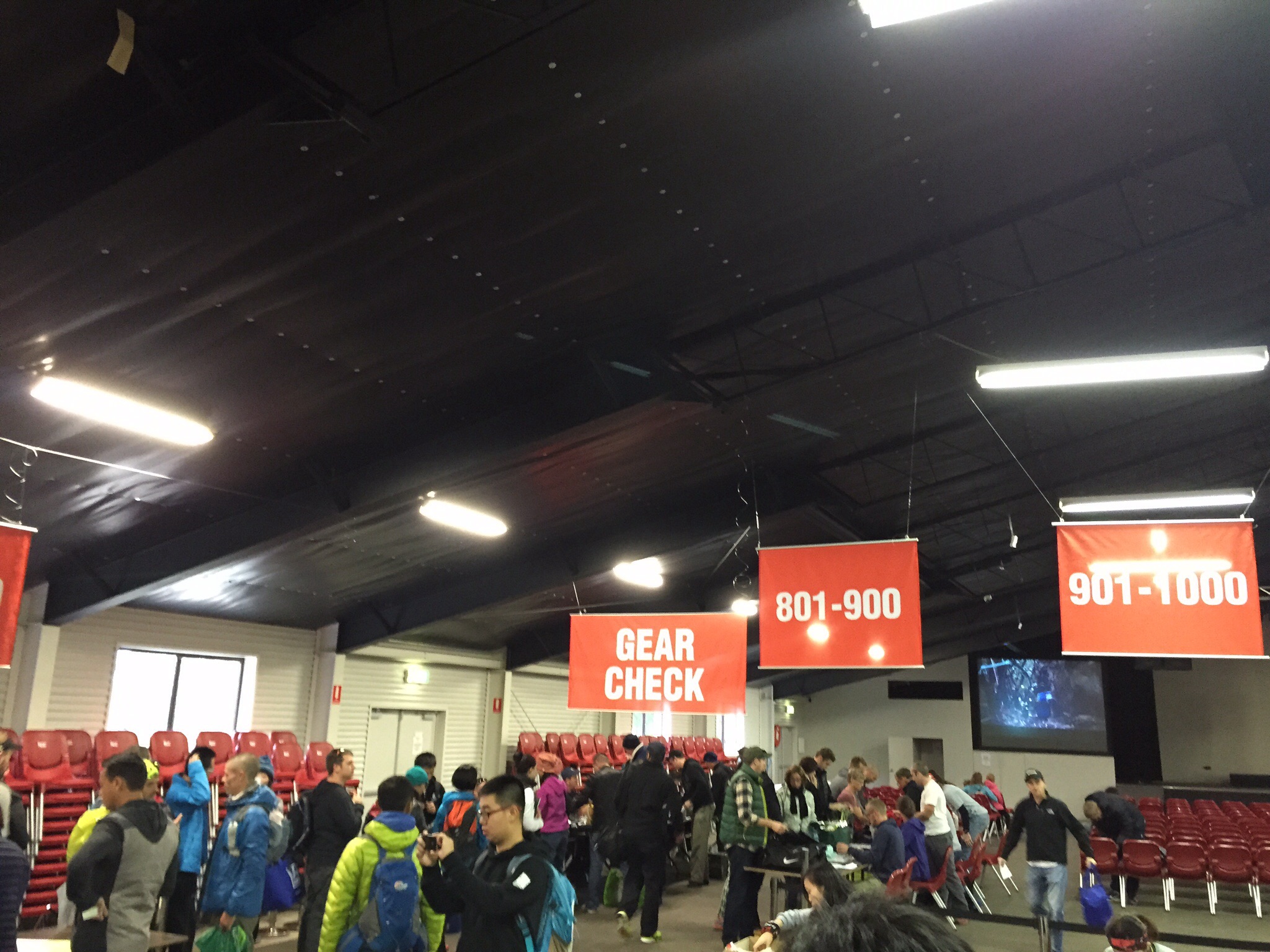 受け付け開始時間を少し前に受け付けが開始される。最初に会場でもらう必携品である火打石と防水マッチを受け取る、その後gear check。