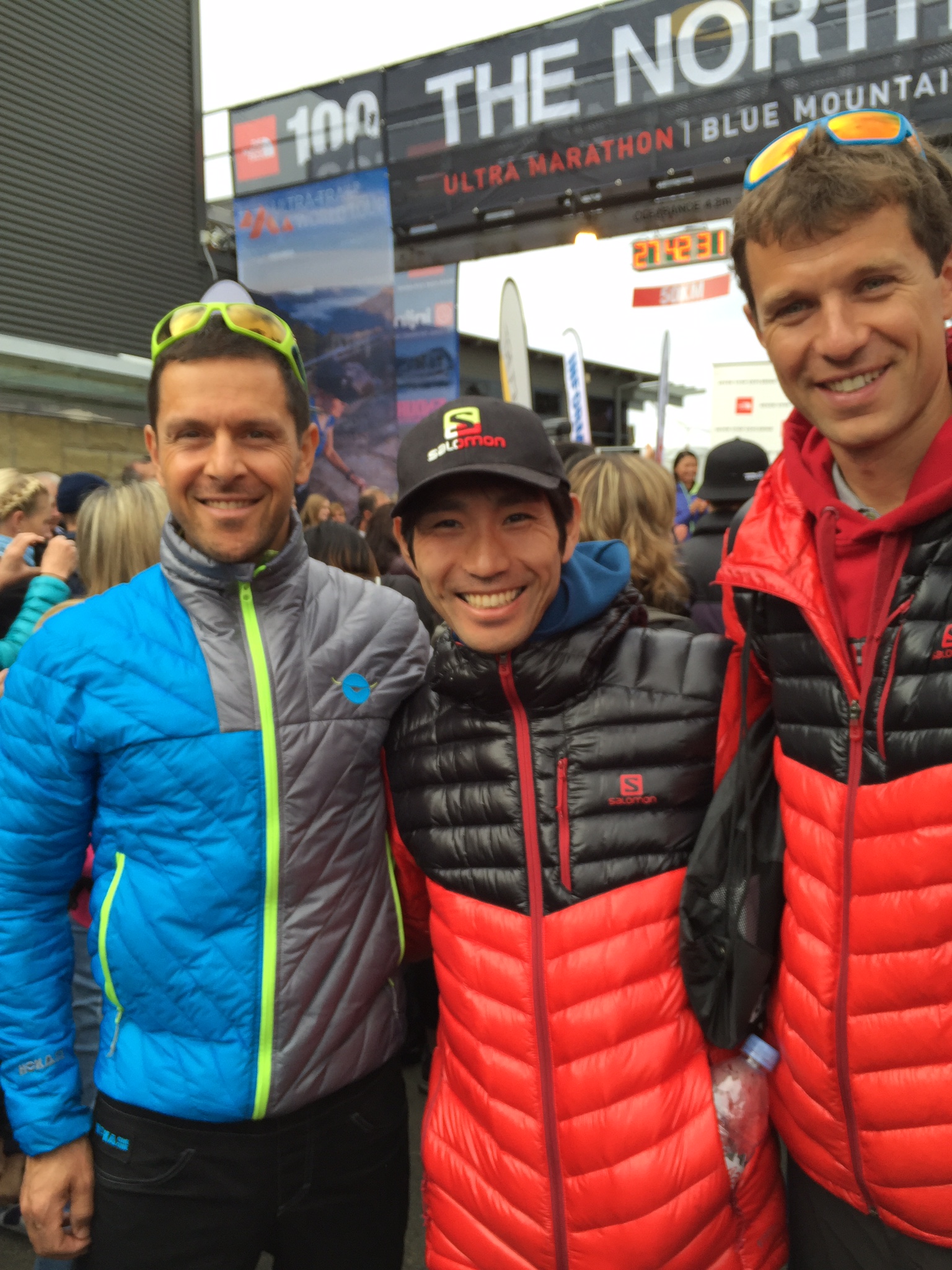 座って補給したのもあってか足の筋肉疲労が和らいでいるのが実感できたので、ロードはスピードを上げると両足の大腿四頭筋に悲鳴がw少しスピードを緩めて走っていると後ろからstone選手が・・・「Hey OOSE〜!!」と相変わらず爽やかな笑顔と声で追いついてくるが、どうやらstone選手も足がヤバイとのこと。なので二人でペースを作って前を追いかけようってことでここから約30㎞の道のり約90㎞地点手前まで並走することとなる。この並走中お互いの色々なことを話す。お互い同じアジアの選手であり昨年のUTMBで後半競ったライバル(私が思っているだけかも・・・(/ω\))。1月のビブラム香港でも負け(stone選手9位で私は11位)ているが、それでも少しづつ差を埋めてきている。今回は(stone選手の)前でゴールしたいなぁっと思っていたが、一緒に走っているとなんかそんな事はどうでもよくなる。なんだろ・・・純粋に楽しいw足は痛いがそんな事を忘れるぐらい楽しい。下りになるとお互い痛みを声に出して叫ぶがそれも楽しいw