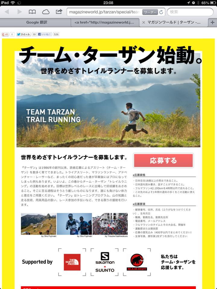 「世界を目指すトレイルランナー」を募集しますと言うスローガンに惹かれて応募。そして見事選出される。