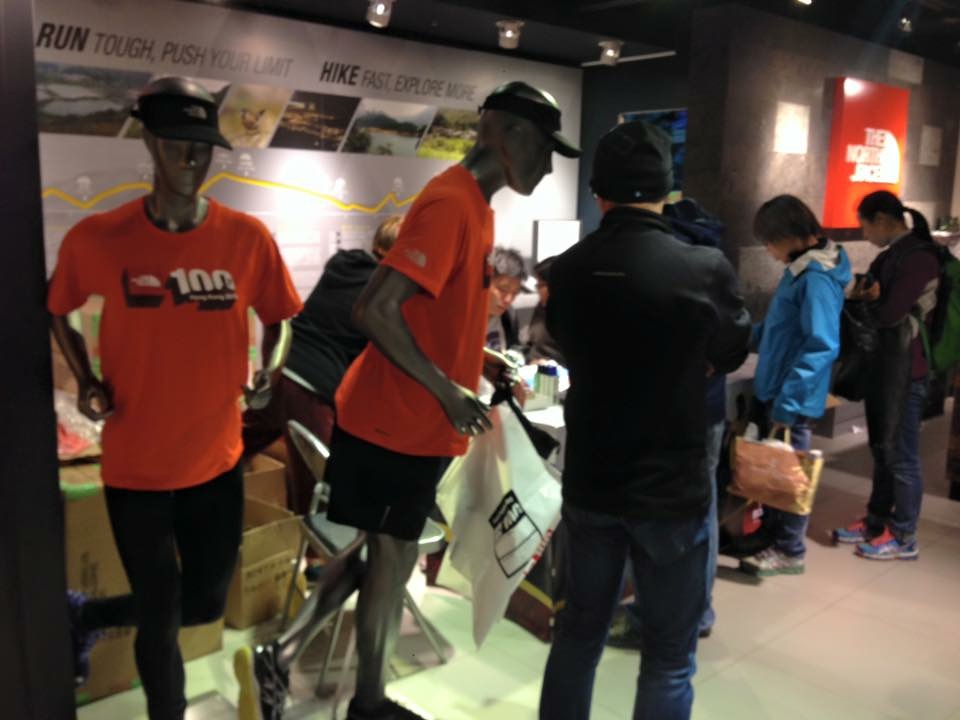そして帰宅の途中で、BIBなどのレースキットを受け取りに寄り道。大きなショッピングモールの中にある、アウトドアフロアに香港THE NORTH FACEのSHOPがありそこの隅っこで受付を済ませる。
